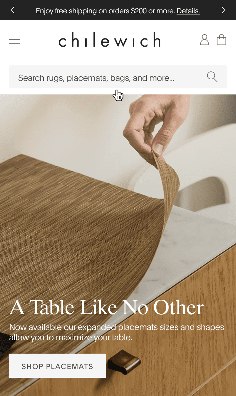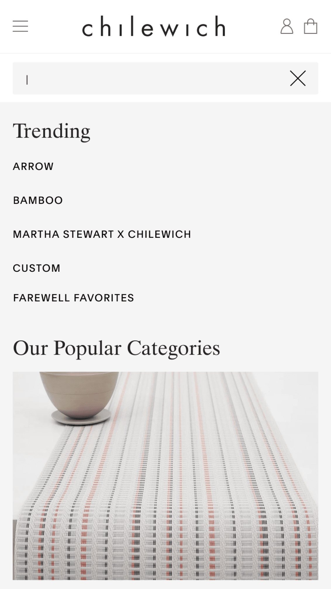 Chilewich catalog is expansive (textures, colorways, shapes, customization), but their existing site made it hard to navigate. Discovery was broken, the visual language didn't match where the brand had gotten to, and it was time for a full rebuild to better represent Chilewich's customer needs.