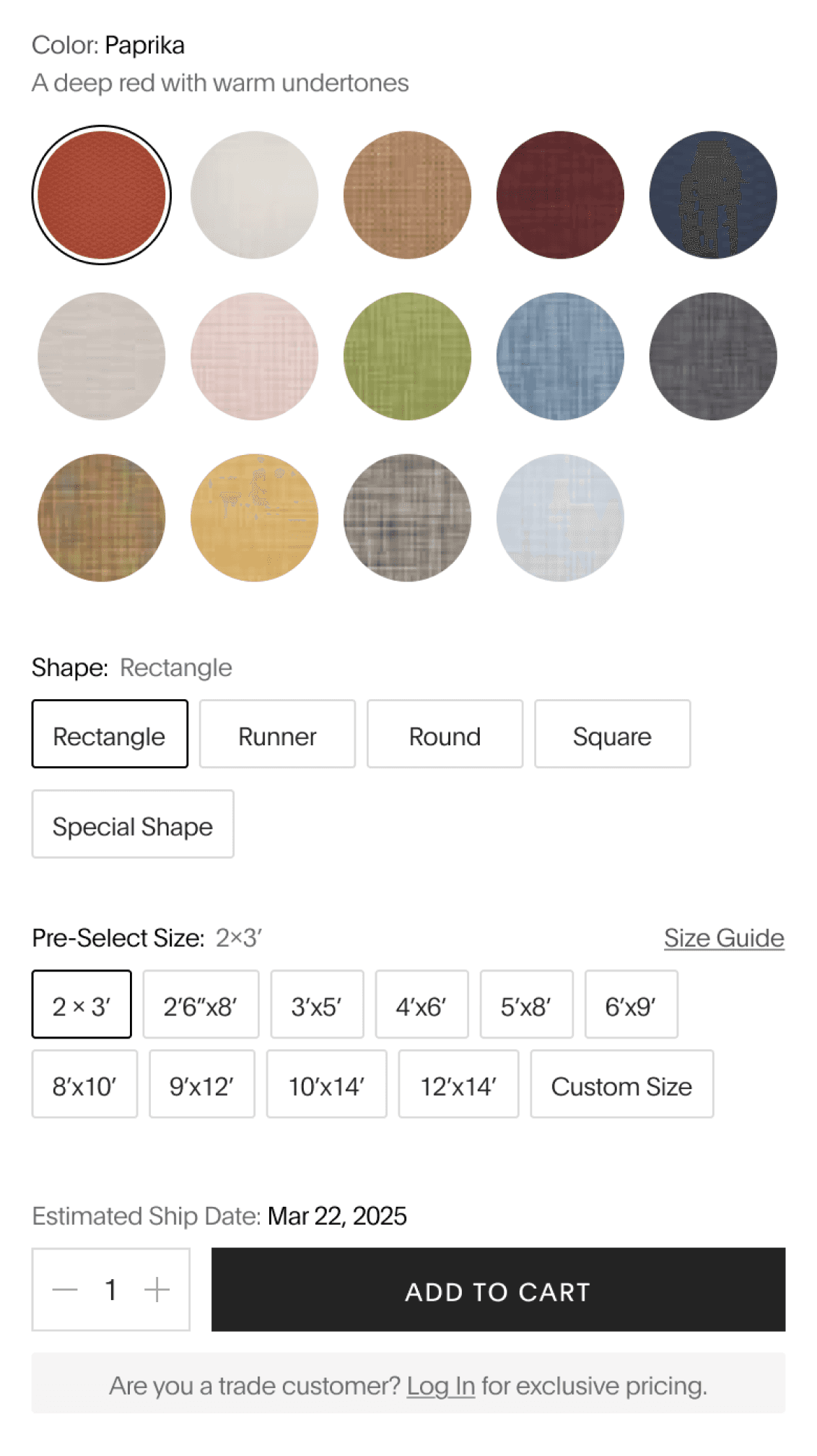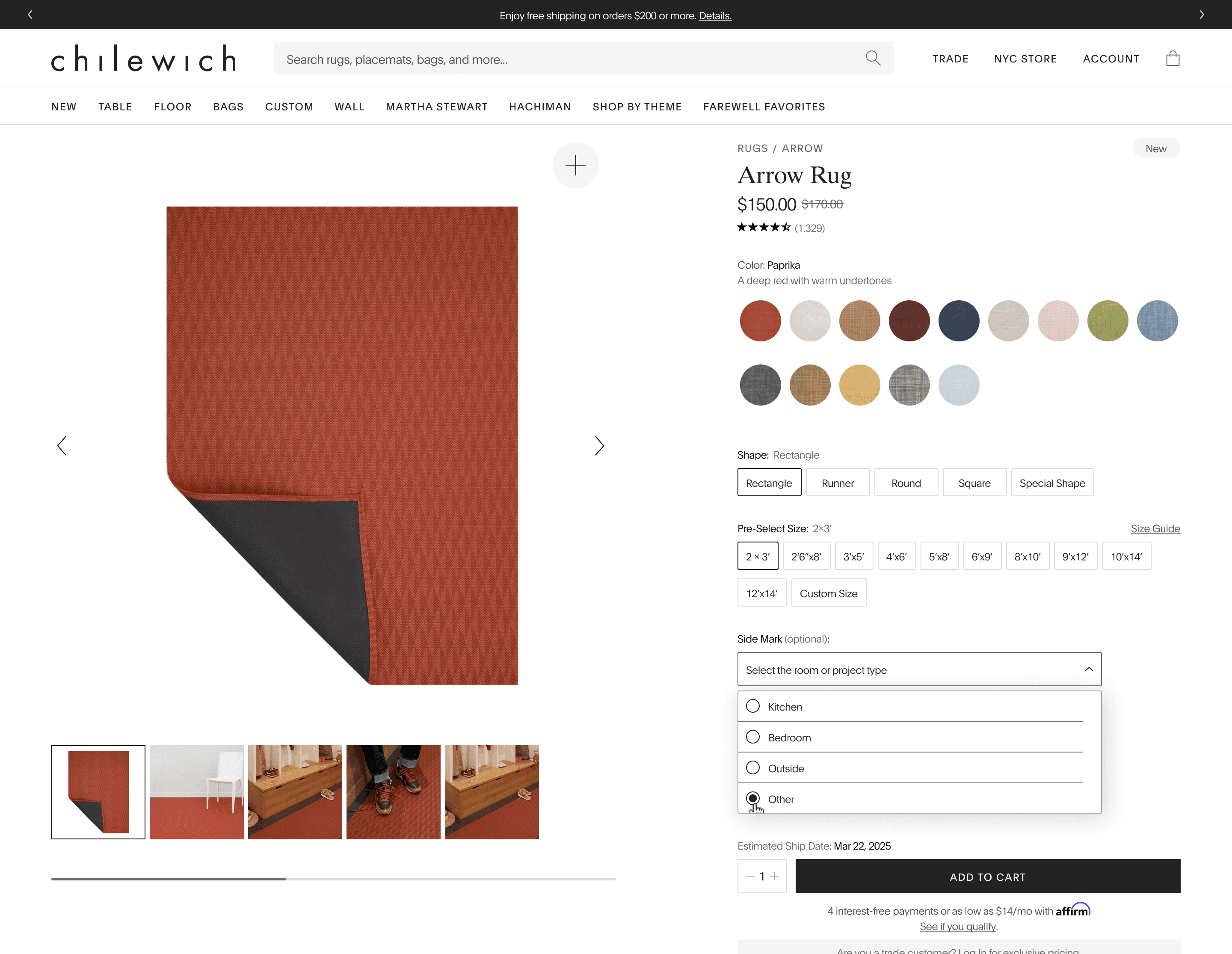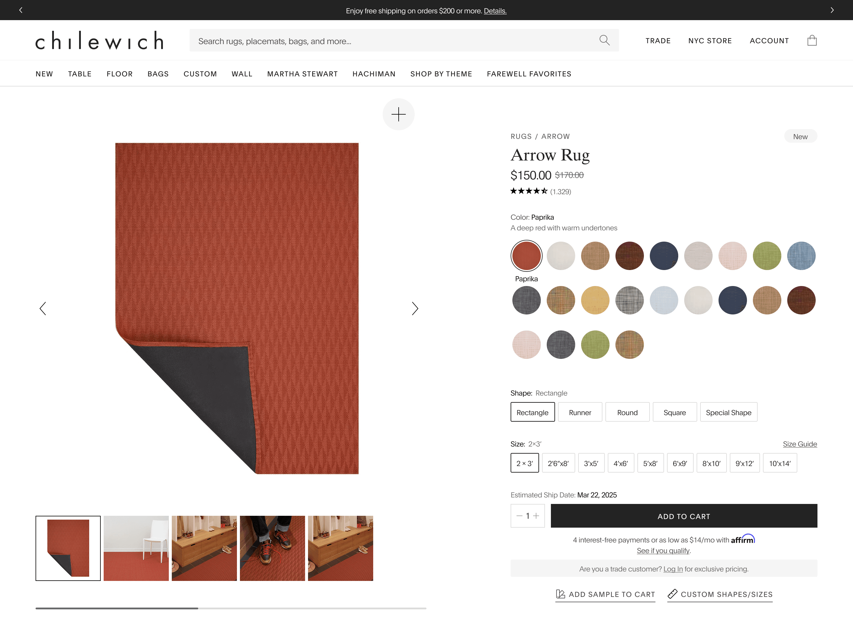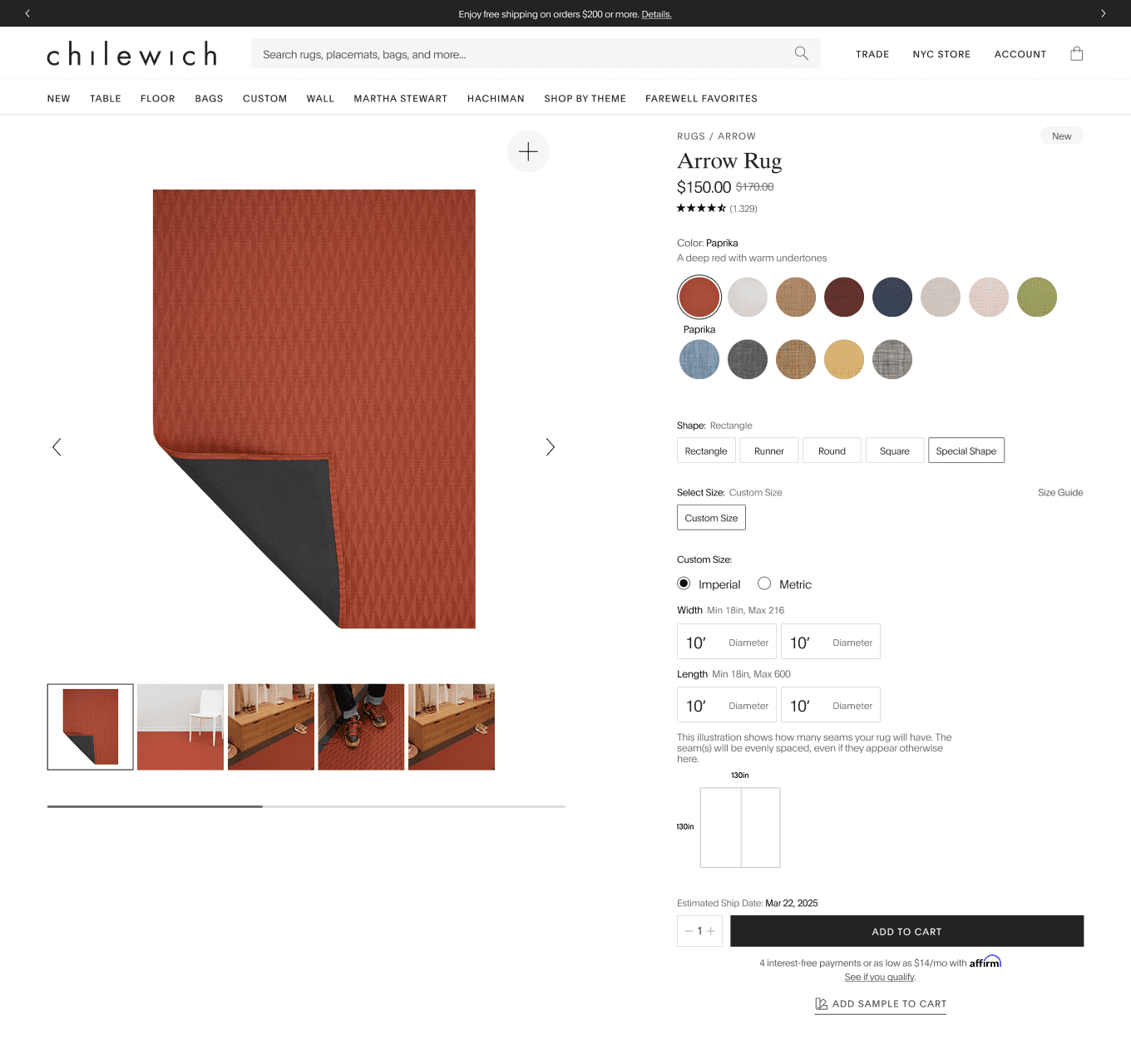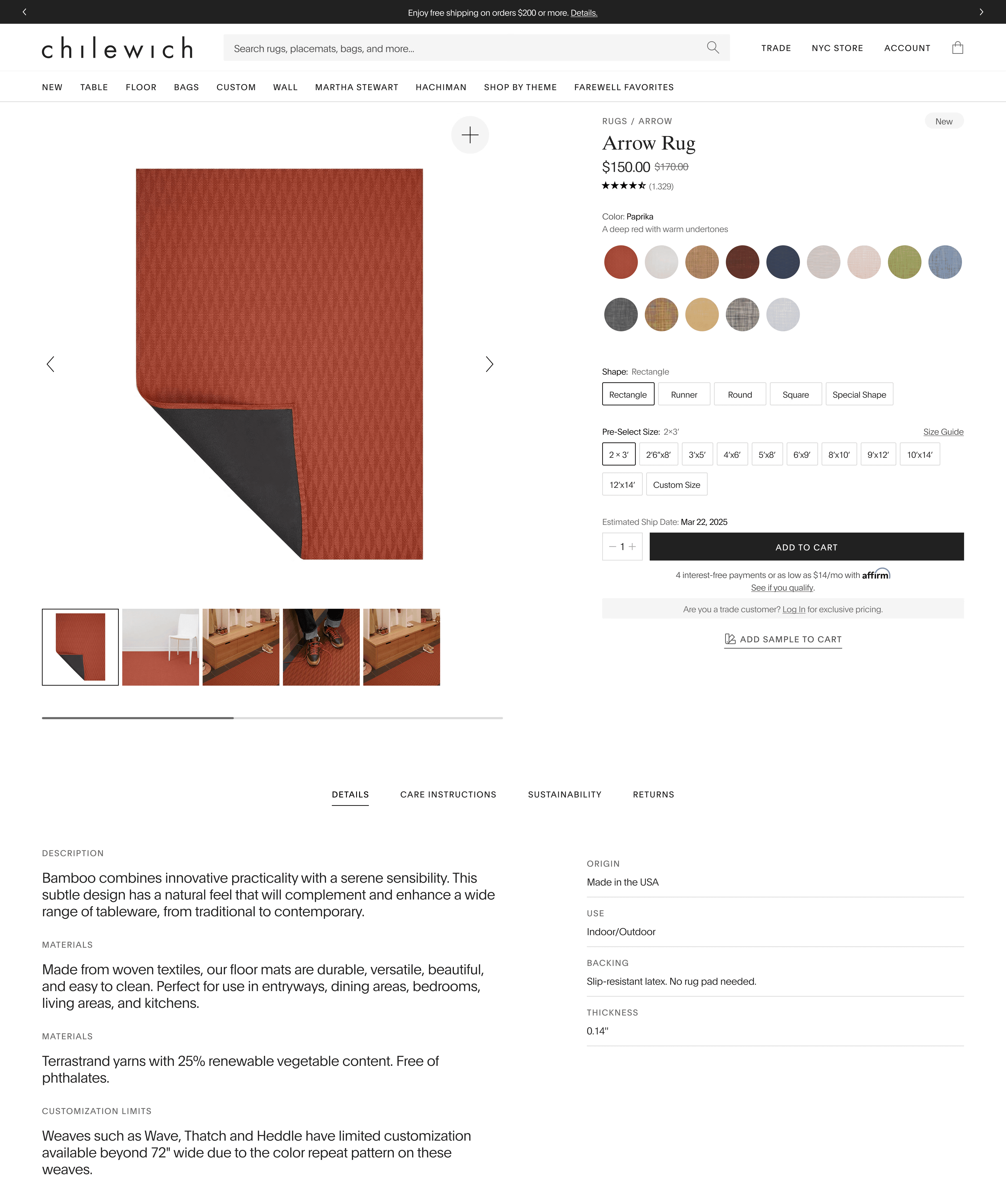 Chilewich's catalog is large, varied, and serves different customers. The PDP had to be designed to handle every scenario.