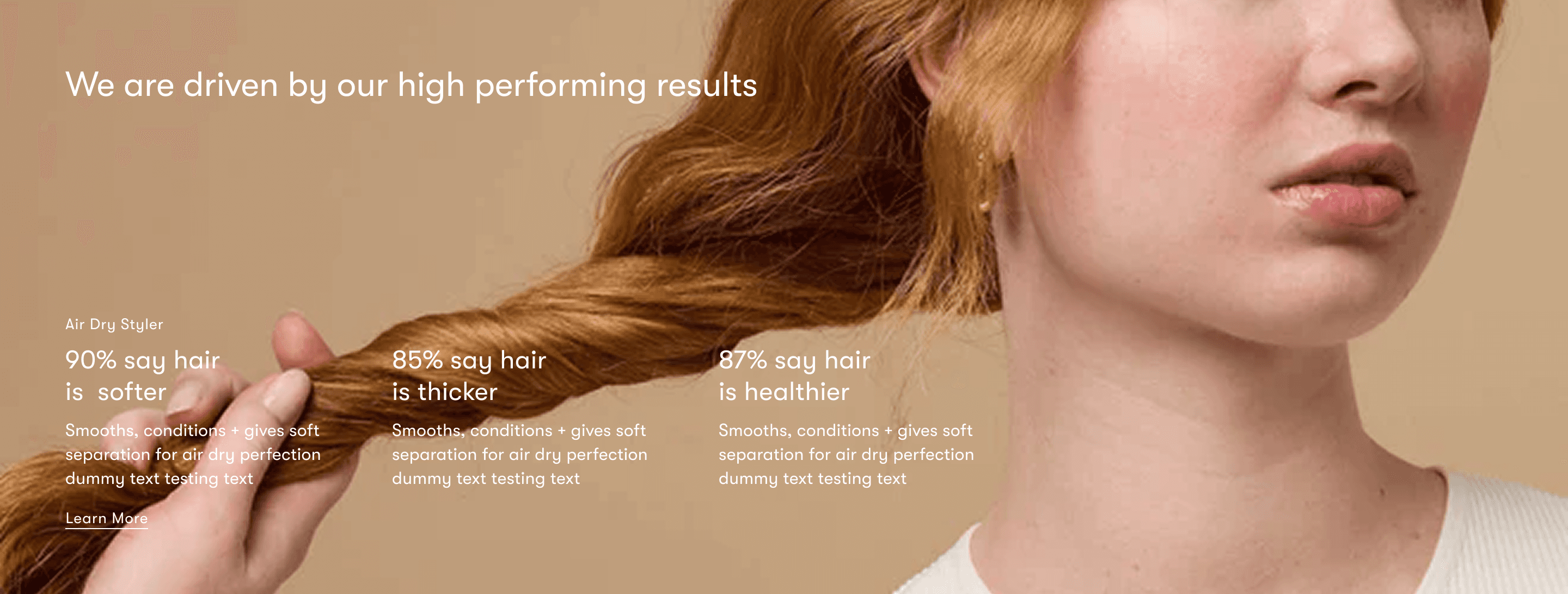 Full-bleed photography paired with performance stats, designed to feel native to the brand rather than bolted on.